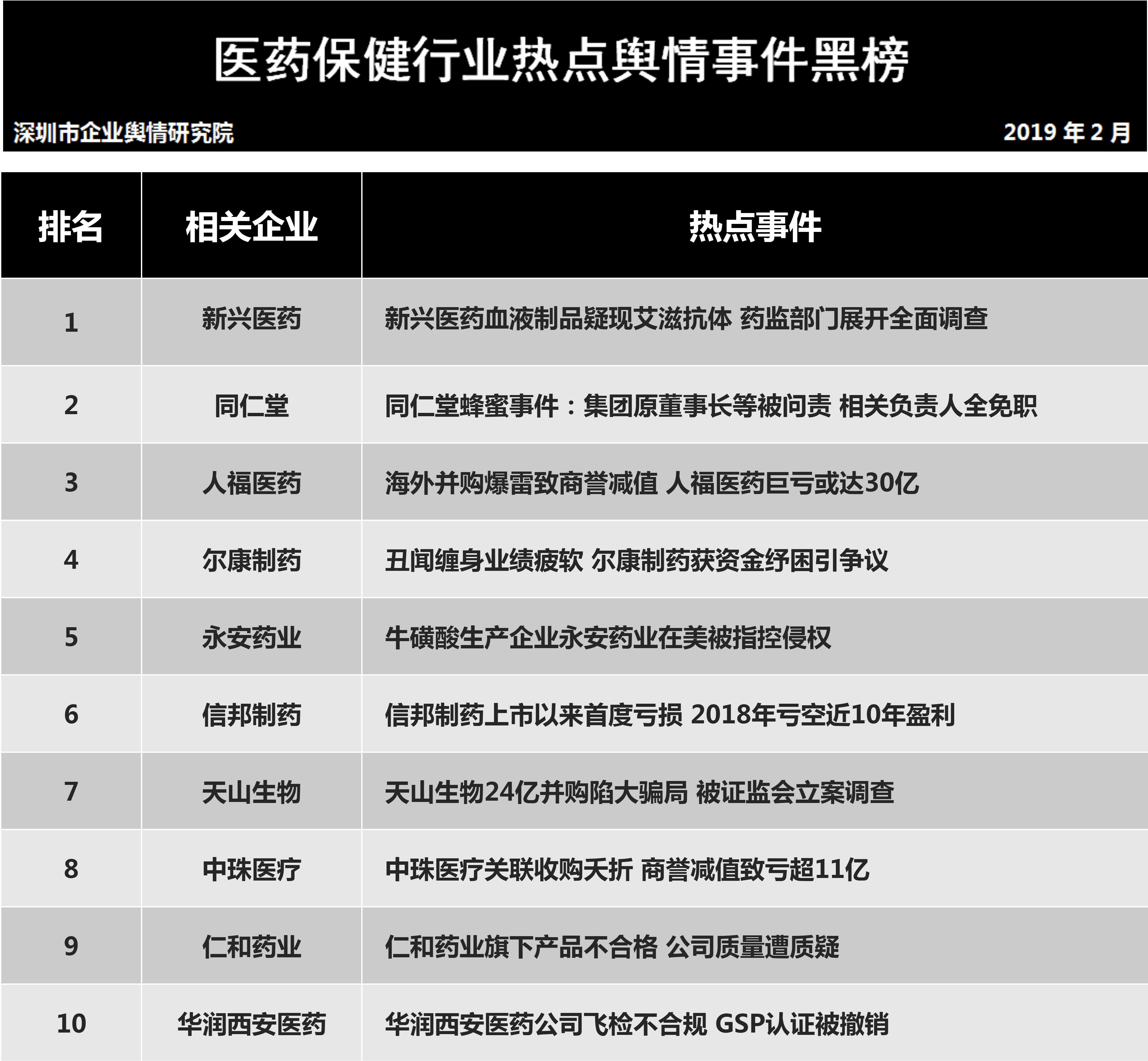 深圳新聞網(wǎng)2019年3月5日訊 (記者田志強(qiáng) 通訊員陳文光)3月5日,深圳企業(yè)輿情研究院發(fā)布第十三批企業(yè)輿情榜單。本次榜單重點(diǎn)聚焦房地產(chǎn)及醫(yī)藥保健兩個(gè)行業(yè)。醫(yī)藥保健行業(yè)輿情榜單由醫(yī)療保健行業(yè)熱點(diǎn)輿情事件排行榜(紅、黑榜)及醫(yī)藥保健行業(yè)企業(yè)公眾形象排行榜組成。