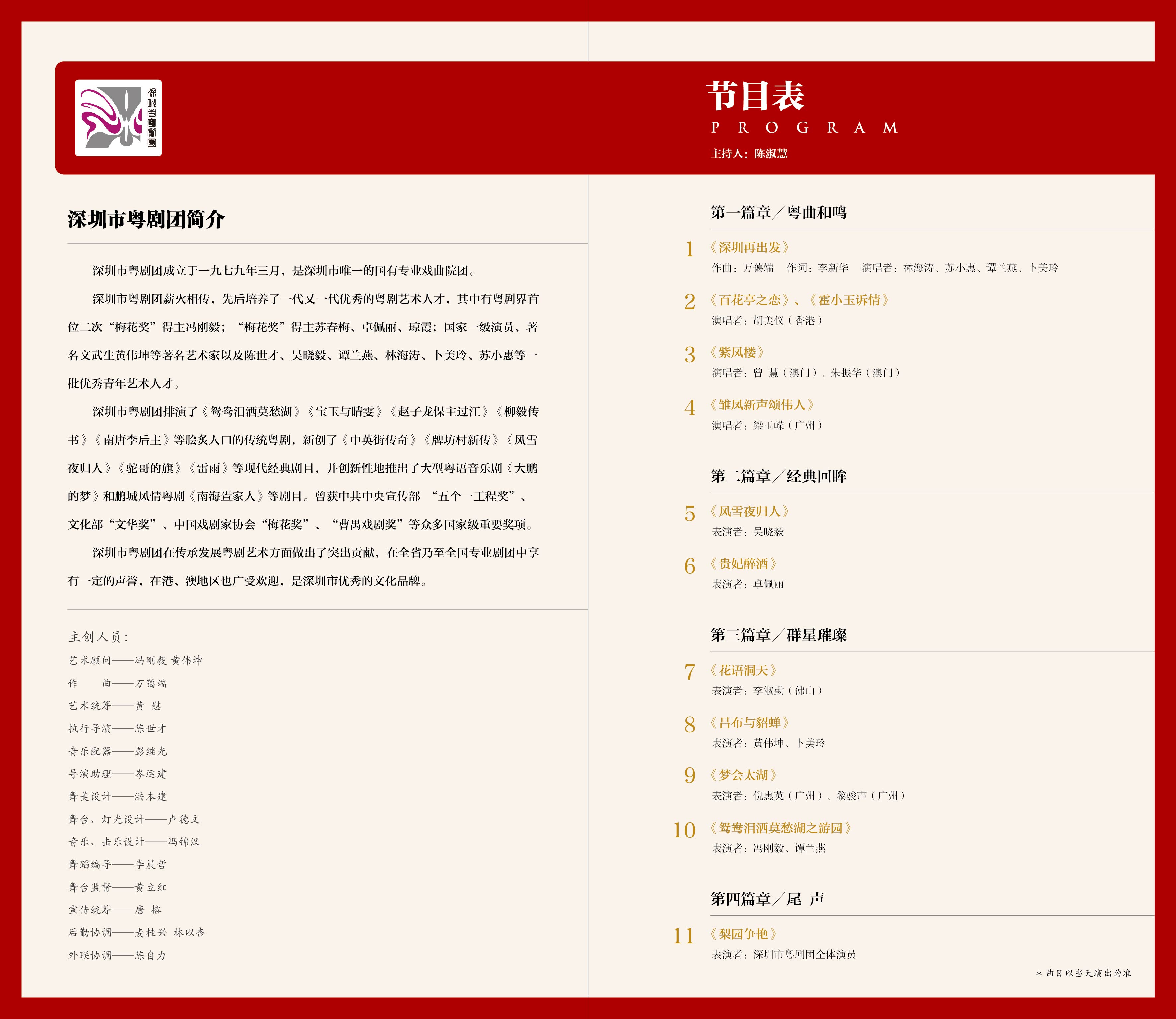 “輝煌四十年,深圳再出發(fā)”。四十年來(lái),深圳粵劇團(tuán)緊跟城市發(fā)展的步伐,風(fēng)雨兼程,培養(yǎng)了馮剛毅、蘇春梅、黃偉坤等一批優(yōu)秀的粵劇表演藝術(shù)家,創(chuàng)作出《風(fēng)雪夜歸人》《中英街傳奇》《駝哥的旗》等一大批優(yōu)秀藝術(shù)作品,打造了具有地方特色的粵劇“碼頭”。