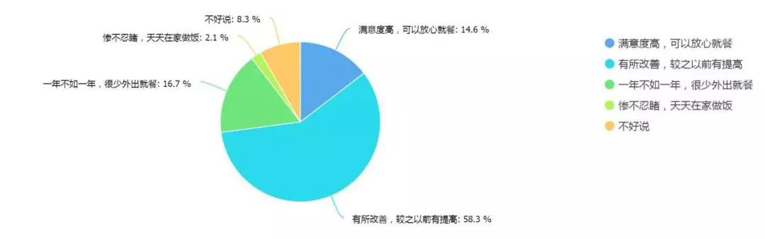 對于深圳白領非常關心的餐飲店面,接近6成受訪者認為比之前有所改善,14.6%受訪者認為可以放心就餐