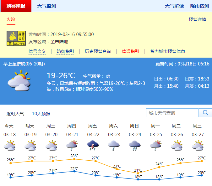 深圳新聞網(wǎng)2019年3月18日訊 今日,深圳全市多云間陰天局地偶有短時陣雨,氣溫19-21℃,局地偶有短時陣雨。