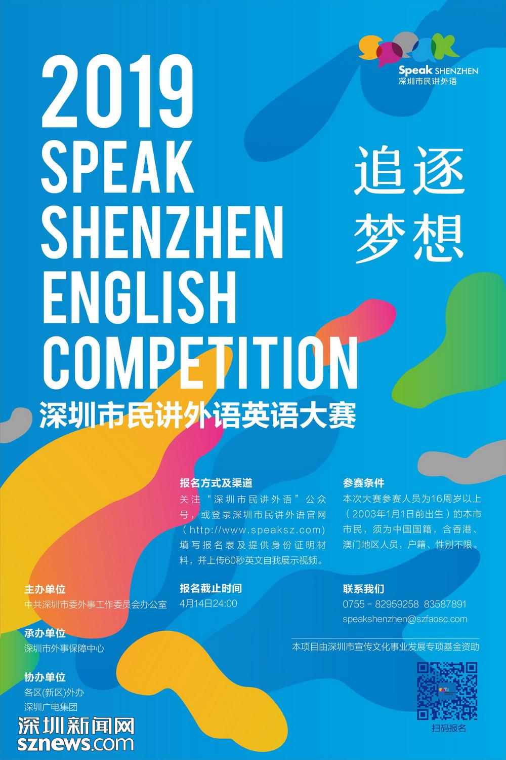 由中共深圳市委外事工作委員會辦公室主辦、深圳市外事保障中心承辦的2019“深圳市民講外語”英語大賽已正式啟動(dòng)。記者了解到,本次大賽參賽人員為16周歲以上(2003年1月1日前出生)的本市市民,須為中國國籍,含香港、澳門地區(qū)人員。有意參加比賽的市民需在4月14日24:00前關(guān)注“深圳市民講外語”公眾號或登錄深圳市民講外語官網(wǎng)(http://www.speaksz.com)填寫報(bào)名表及提供身份證證明材料,并上傳60秒英文自我展示視頻,完成報(bào)名。