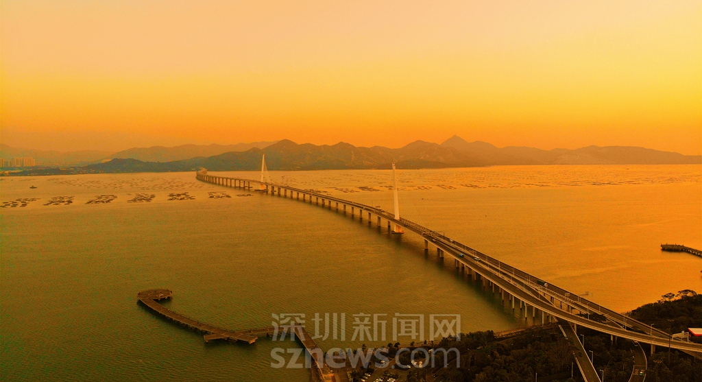 深圳灣口岸和遠(yuǎn)處的深圳灣大橋