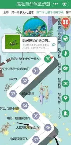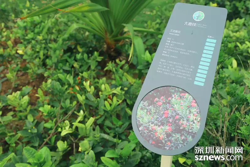 隨著綠道行進的深入,記者來到第一個自然觀察研習(xí)點,這里配置有自然研習(xí)導(dǎo)賞標(biāo)識牌,牌上有植物動物的照片及介紹,牌子的角落有供游客學(xué)習(xí)的二維碼。記者了解到,新區(qū)同時開發(fā)建立一套APP自然課堂學(xué)習(xí)系統(tǒng),在綠道全程配套建設(shè)64個實地自然觀察研習(xí)點,設(shè)置了260余個自然研習(xí)導(dǎo)賞標(biāo)識,接入專業(yè)智能識別軟件,配以體量龐大生物影像數(shù)據(jù)庫。掃碼進入APP就可以通過文字、圖片和音像資料了解到“大鹿線”全景介紹和分區(qū)介紹,以及物種相關(guān)知識。同時,該系統(tǒng)利用手機GPS定位技術(shù),為行進中的市民游客自動講解所到之處的自然課堂語音課程。來自羅湖的資深驢友李先生告訴記者,來“大鹿線”徒步,不僅鍛煉身體愉悅心情,還可以學(xué)到豐富的自然知識,打開APP行走全程,猶如參觀了一座多維一體的山海“全景博物館”。