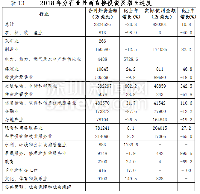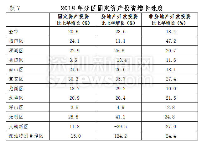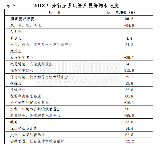 2018年,深圳全市固定資產(chǎn)投資比上年增長20.6%。其中,房地產(chǎn)開發(fā)投資增長23.6%;非房地產(chǎn)開發(fā)投資增長18.4%。分投資主體看,國有經(jīng)濟投資增長36.7%;民間投資增長12.5%;港澳臺商經(jīng)濟投資下降22.6%;外商經(jīng)濟投資增長30.3%。