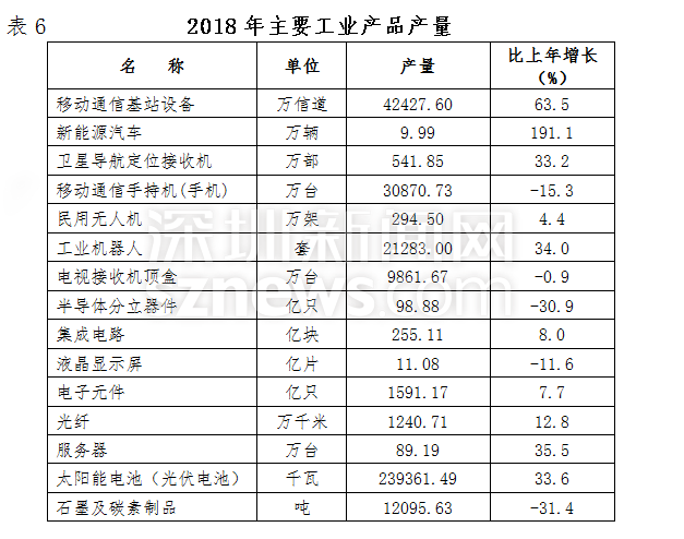 2018年,深圳全部工業(yè)增加值9254.00億元,比上年增長9.0%。規(guī)模以上工業(yè)增加值增長9.5%。在規(guī)模以上工業(yè)中,國有企業(yè)增加值下降21.4%;集體企業(yè)下降5.6%;股份制企業(yè)增長12.8%;外商及港澳臺商投資企業(yè)增長3.8%。分輕重工業(yè)看,輕工業(yè)增加值增長6.2%;重工業(yè)增加值增長10.2%。