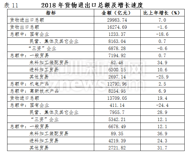 全年貨物進出口總額29983.74億元,比上年增長7.0%。其中出口總額16274.69億元,下降1.6%;進口總額13709.05億元,增長19.4%。出口總額連續(xù)二十六年居內(nèi)地大中城市首位。