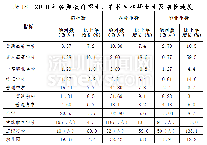 深圳新聞網(wǎng)2019年4月19日訊(記者 劉夢婷 通訊員 胡雪濤)4月19日,記者從深圳市統(tǒng)計局獲悉,深圳市2018國民經(jīng)濟與社會發(fā)展統(tǒng)計公報出爐:全市實現(xiàn)地區(qū)生產(chǎn)總值24221.98億元,比上年增長7.6%,常住人口達1302.66萬人。人均可支配收入57543.60元,居民人均消費支出40535.02元。總體來看,2018年深圳經(jīng)濟運行穩(wěn)健,主要經(jīng)濟指標表現(xiàn)良好,高質量發(fā)展扎實推進。