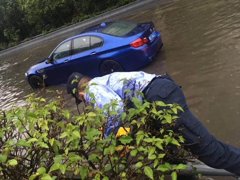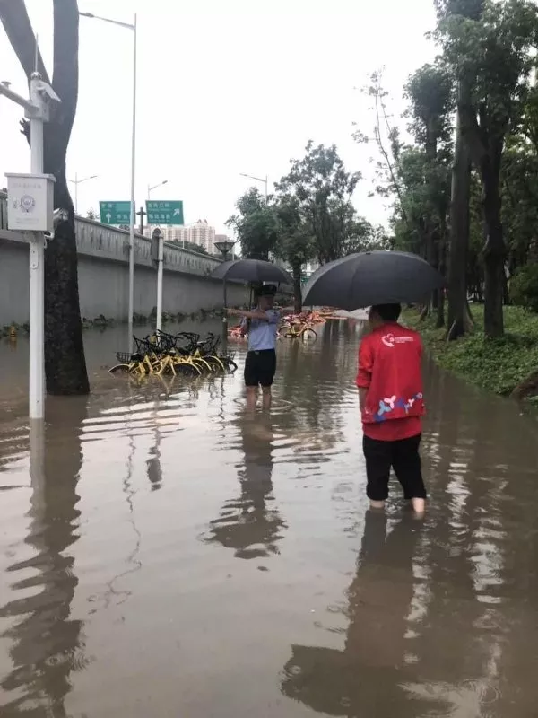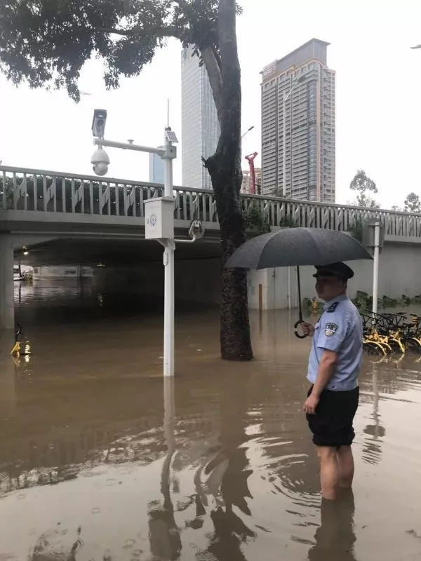 昨日上午9時許,福田區(qū)突降暴雨。福強派出所民警周玉鐮和蘭東階發(fā)現(xiàn)皇崗立交橋下出現(xiàn)積水,對過往車輛和行人造成隱患,立即開展疏導(dǎo)交通和幫助群眾工作,直至積水退去。