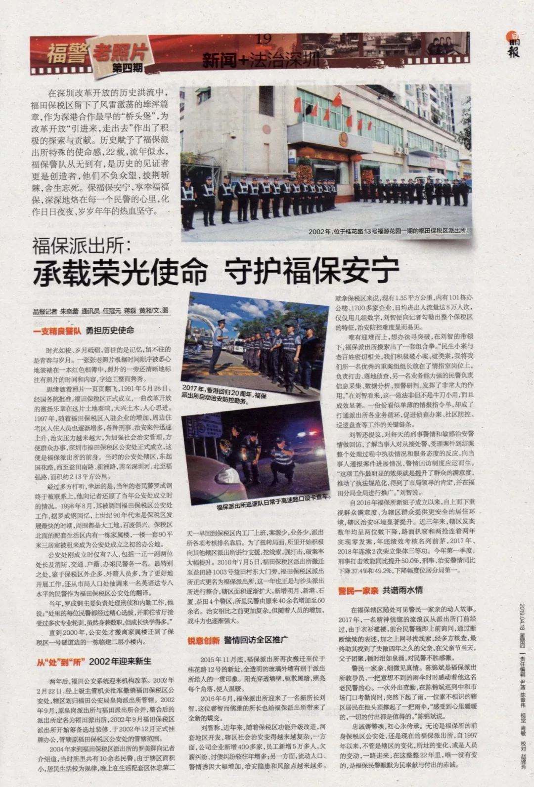 2010年7月5日,福田保稅區(qū)派出所搬遷至益田路1003號益田村東大門旁,福田保稅區(qū)派出所正式更名為福保派出所,這一年也正是與沙頭派出所進(jìn)行整合,轄區(qū)面積逐漸擴(kuò)大,新增明月、新港、石廈、益田4個警區(qū),所里民警由原來40余名增加至60余名。治安相比之前更加復(fù)雜,但隨著人員的增加,戰(zhàn)斗力也逐漸強(qiáng)大。