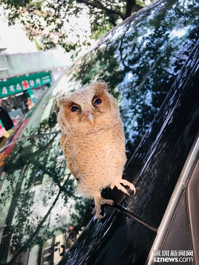 深圳新聞網(wǎng)2019年4月25日訊(記者 鄭曉鵬)今日早上8點多,一只小貓頭鷹停留在蓮花北村小區(qū)一輛小汽車上,路過的市民紛紛圍觀拍照。