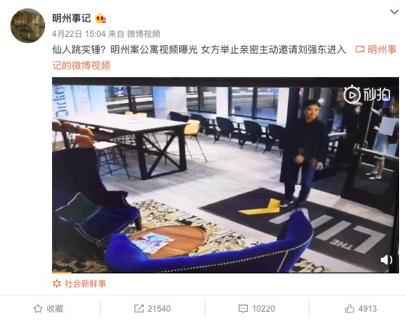 就在人們以為事件就此平息的時(shí)候,又爆出一系列和該案有關(guān)的料。首先是本案當(dāng)事人LIUJINGYAO宣布起訴京東集團(tuán)及劉強(qiáng)東。4月22日、23日微博上爆出監(jiān)控視頻以及劉強(qiáng)東美國律師和LIUJINGYAO之間電話談話的錄音。