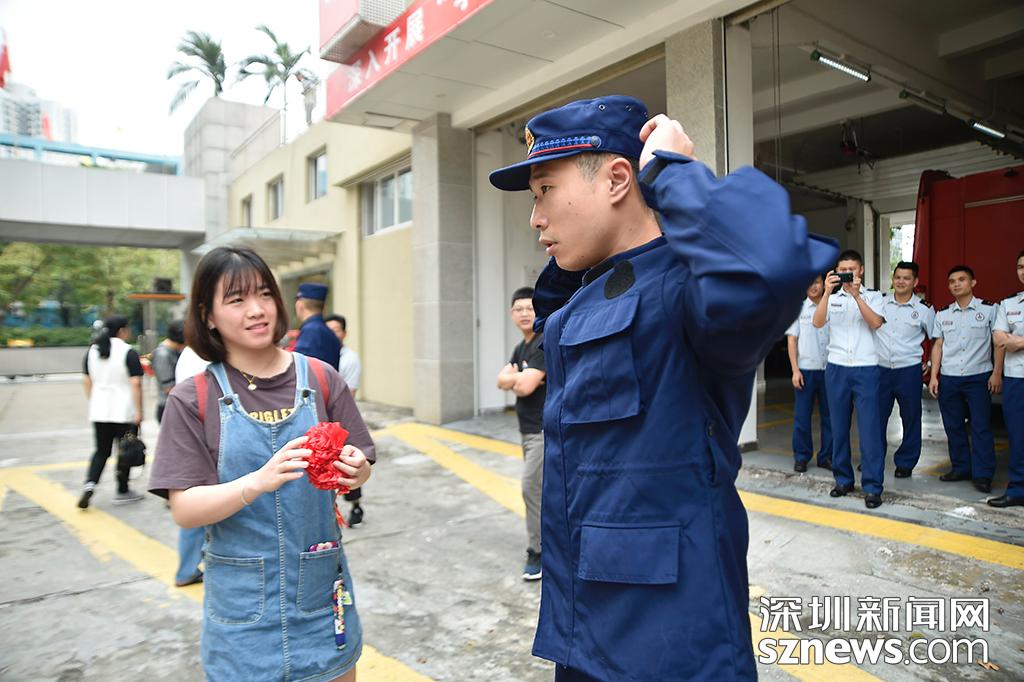 深圳新聞網(wǎng)4月28日訊(記者 楊浩翰)身著火焰藍(lán)的作訓(xùn)服,胸前戴著“光榮入隊(duì)”的紅花,這是今天早上在深圳消防支隊(duì)的一幕。4月28日,消防改制之后深圳第一批共20名招錄的消防員從深圳支隊(duì)出發(fā)前往廣州進(jìn)行為期一年的集訓(xùn)。