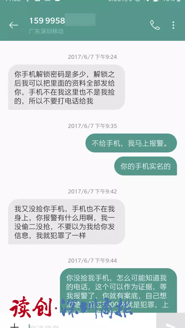 “你手機密碼多少,我把里面的資料全部發(fā)給你,但手機不是我撿的,不要打電話給我?!?/p>
