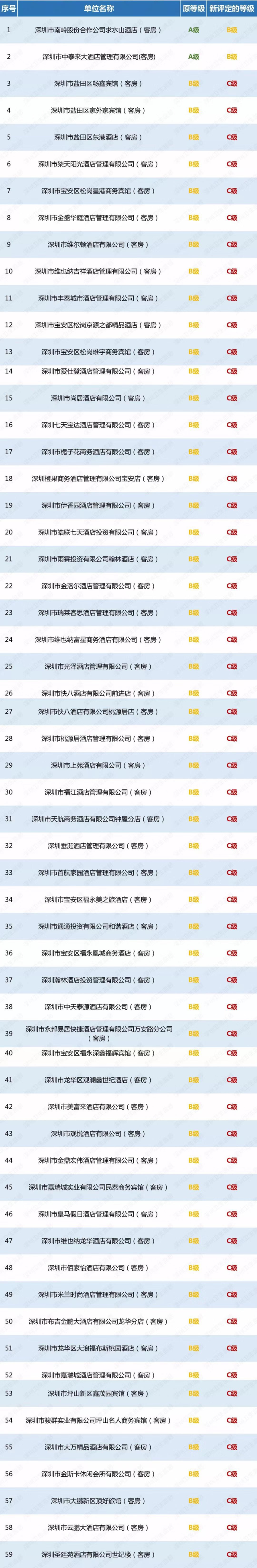 深圳59家酒店被降級(jí) 含七天、維也納等品牌
