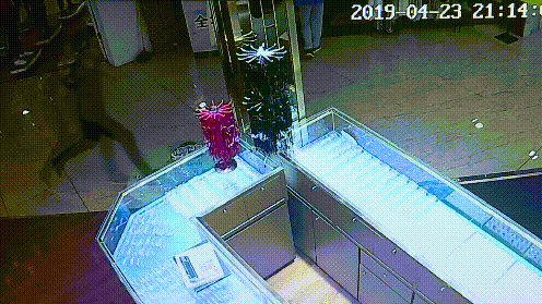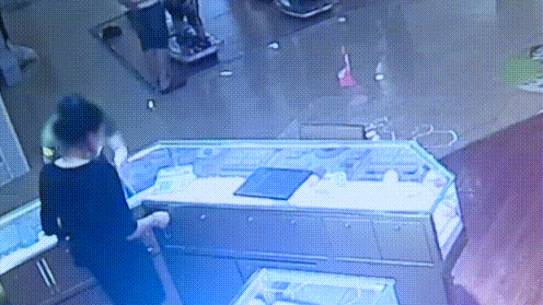 讓人沒想到的是,男子指示柜員換一枚戒指就在柜員彎腰整理貨品的時候男子拿著鉆戒轉!身!就!跑!