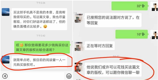 記者問:柔宇提到自媒體作者要求按閱讀量索要版權(quán)費(fèi),柔宇已報(bào)案。請(qǐng)問,憑微信聊天記錄頁面是否形成證據(jù)鏈,法院會(huì)采信嗎?
