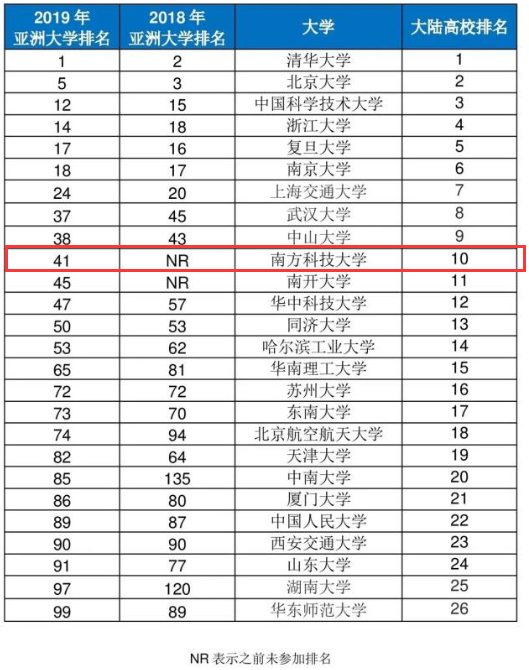 近日,2019年泰晤士亞洲大學排名出爐南科大排名內地10強
