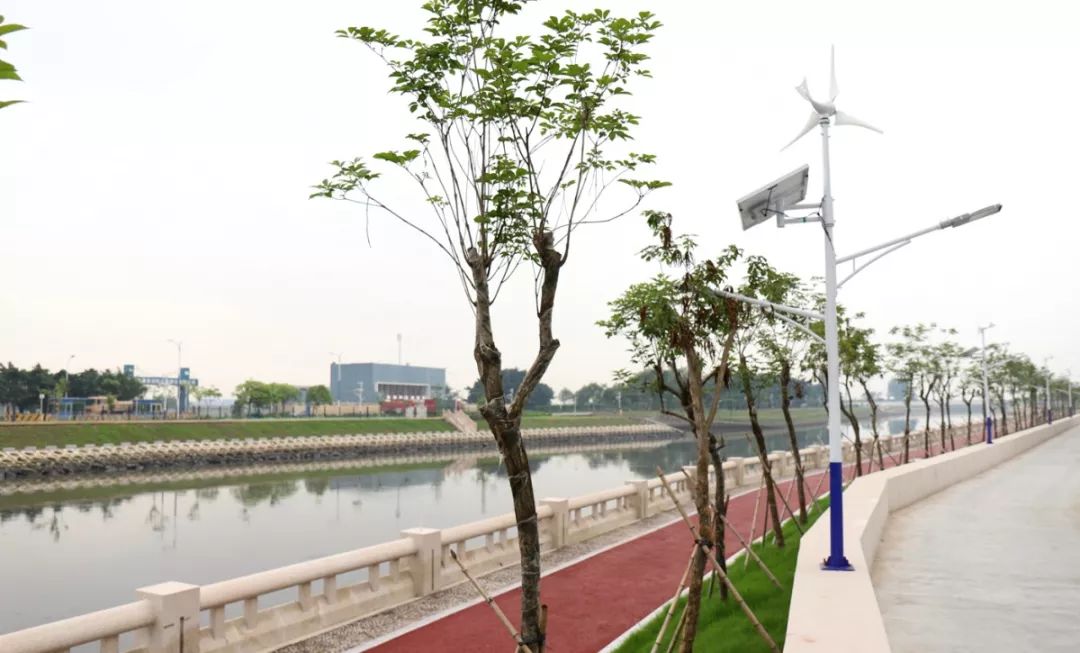 河流沿岸安裝了風(fēng)能、太陽能路燈