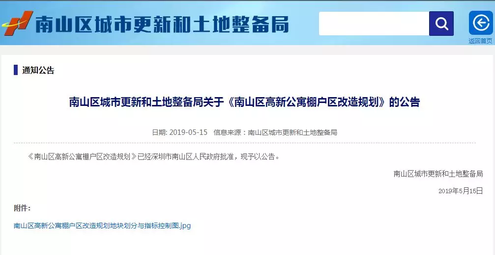 ▲南山區(qū)城市更新和土地整備局網(wǎng)站截圖