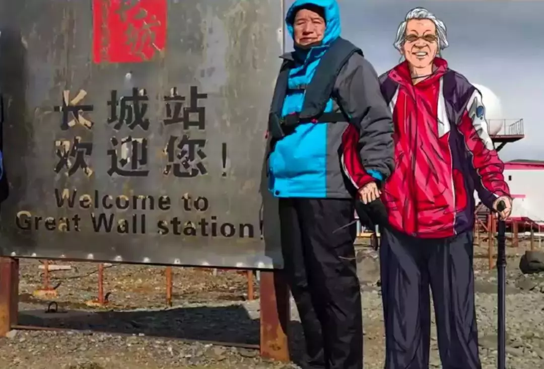 用手繪定格這份愛(ài),幫助邱協(xié)耕和他最?lèi)?ài)的人南極“合影”。圖源:央視新聞