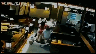 從監(jiān)控畫面可以看到,一名身穿白色上衣的男子先是打了一名女子一巴掌并踹了一腳,后來又對其他兩名女子動手,而這三名女子正是余小姐和她的兩名朋友。
