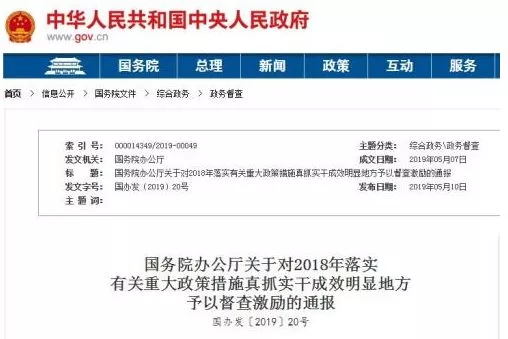 國務(wù)院辦公廳近日印發(fā)通報,對2018年落實重大政策措施真抓實干、取得明顯成效的24個?。▍^(qū)、市)、80個市(州)、120個縣(市、區(qū)、旗)等予以督查激勵,相應(yīng)采取30項獎勵支持措施。