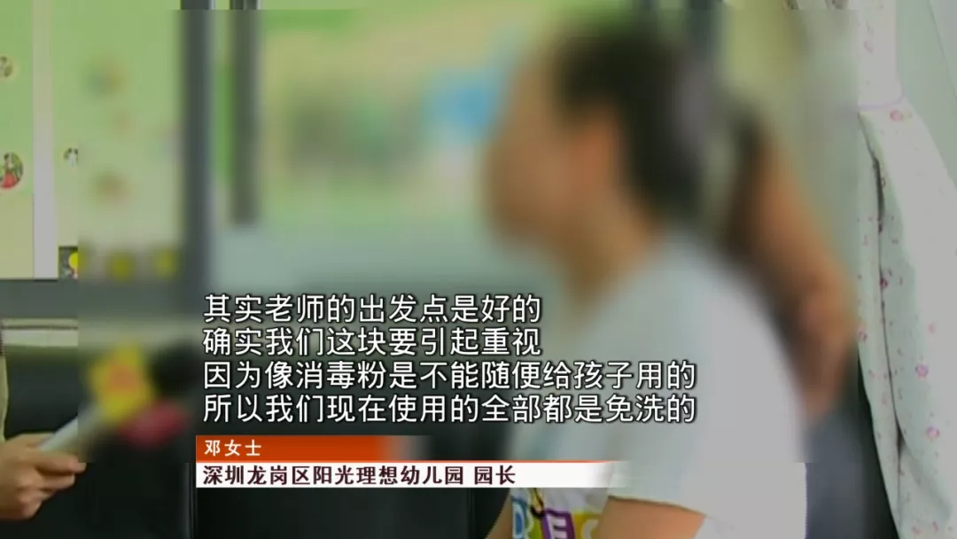 5月24日,龍崗區(qū)教育局了解到該情況后,立即派工作人員到幼兒園進(jìn)行調(diào)查。經(jīng)查,該園出現(xiàn)“皰疹性咽頰炎”后,違規(guī)使用強(qiáng)力消毒粉兌水給幼兒洗手消毒,存在衛(wèi)生保健上嚴(yán)重錯(cuò)誤。