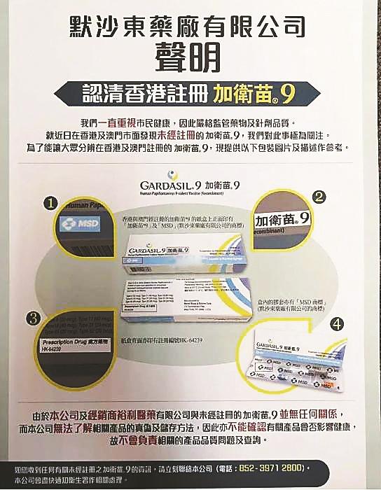早前,HPV(全稱人乳頭狀瘤病毒)九價(jià)疫苗生產(chǎn)商默沙東藥廠曾發(fā)出聲明,把其公司指定的代理商,從未供應(yīng)任何“HPV九價(jià)預(yù)防疫苗”(GARDASIL9加衛(wèi)苗9)予位于佐敦嘉賓商業(yè)大廈的環(huán)亞體檢集團(tuán)(最早被投訴給內(nèi)地客人打水貨疫苗的公司)。