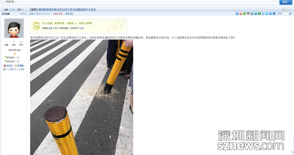 深圳新聞網2019年5月29日訊(記者 劉婷)“蓮花路景田東路交叉口這個安全島看起來不太安全?!苯眨W友“專打蒼蠅”在深圳論壇爆料稱,蓮花路景田東路交叉口安全島警示樁受損,存在安全隱患。5月29日,記者來到該路段實地勘察,發(fā)現(xiàn)安全島受損警示樁已全部整改。 (原帖文:蓮花路景田東路交叉口這個安全島看起來不太安全)