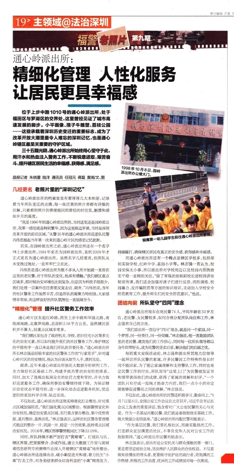 “我是1996年到通心嶺派出所的,當(dāng)時(shí)這里還是園嶺派出所,我第一感覺(jué)就是特別繁華,因?yàn)檫@里臨近羅湖,當(dāng)時(shí)是深圳改革開(kāi)放的前沿區(qū)域?!睆木?5年的通心嶺派出所巡邏隊(duì)民警馮偉思提起當(dāng)年第一次來(lái)到通心嶺片區(qū)的感受記憶猶新。