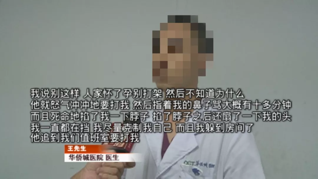 由于陳女士有孕在身,王醫(yī)生見(jiàn)狀,擔(dān)心陳女士會(huì)受到更嚴(yán)重的傷害,于是上前和石某理論,希望調(diào)停,沒(méi)想到自己也遭了殃。
