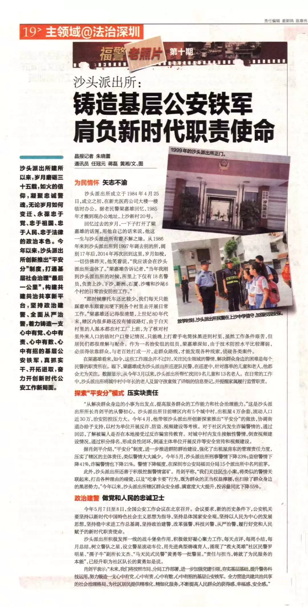 從1986年來到沙頭派出所到1997年調(diào)去別的所,闊別17年后,2014年再次回到這里,歲月如梭,一切仿佛昨天,他笑著說,“我應(yīng)該會在沙頭派出所退休了?!绷杭涡鄹嬖V記者,“當(dāng)年我剛到沙頭派出所的時候,所里上下僅有18名警員,負(fù)責(zé)上沙、下沙、新洲、石廈、沙嘴和沙尾6個村的日常治安防控工作?!?/p>