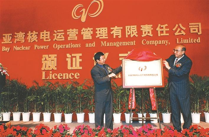 ▲2003年,中廣核核電運(yùn)營有限公司成立,昝云龍(右)揭牌。