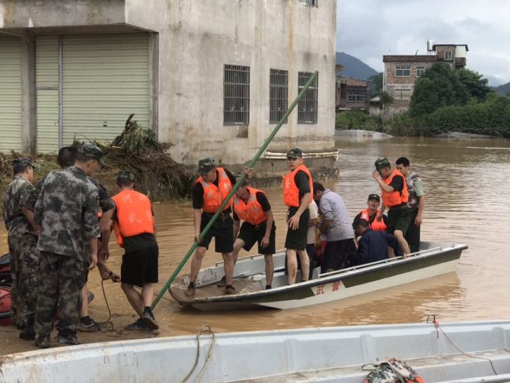 和平縣南湖村有40多名游客被洪水圍困,和平武警官兵趕往現(xiàn)場救援。暫無人員傷亡。