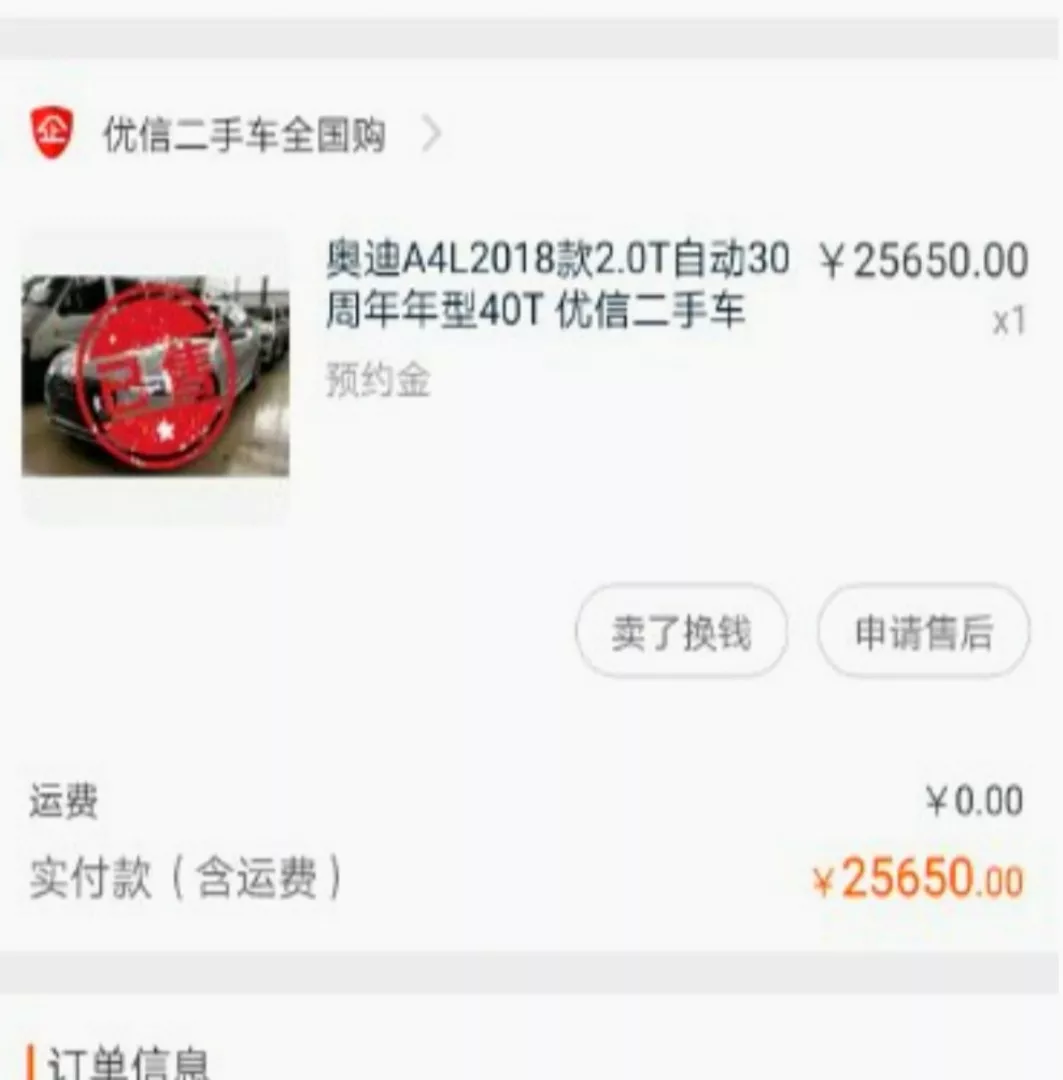 深圳寶安區(qū)的莊先生說,他今年1月初在優(yōu)信app上買了一輛奧迪A4L二手車,價格差不多30萬,并且支付了五成首付。