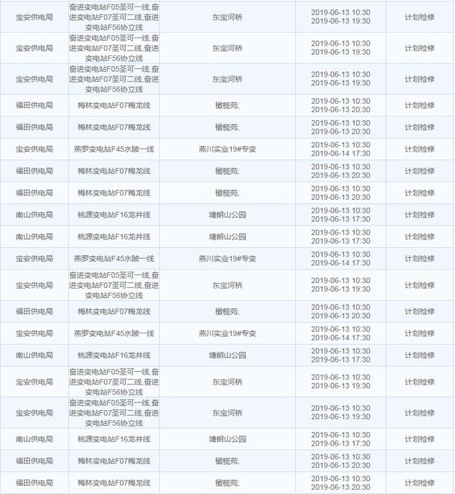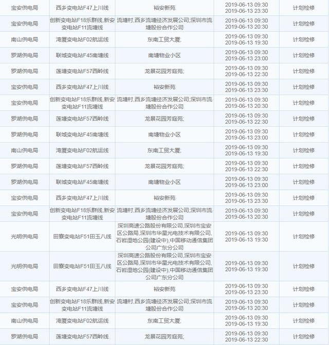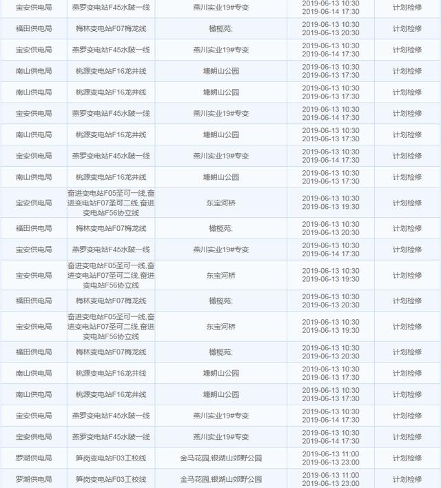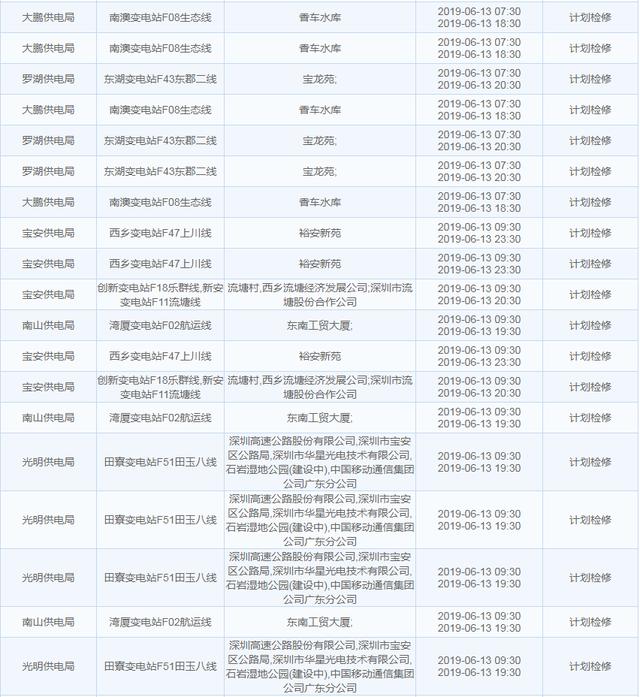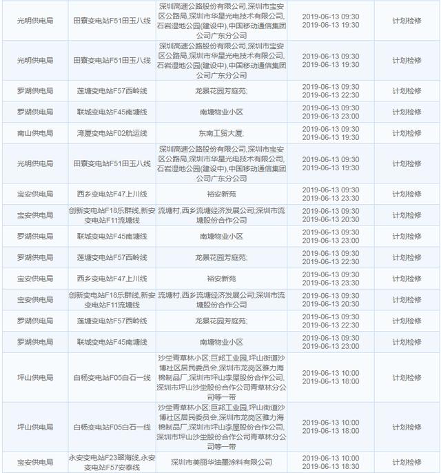 南方電網(wǎng)發(fā)布6月13日至6月16日深圳停電計(jì)劃 涉及多個(gè)區(qū)