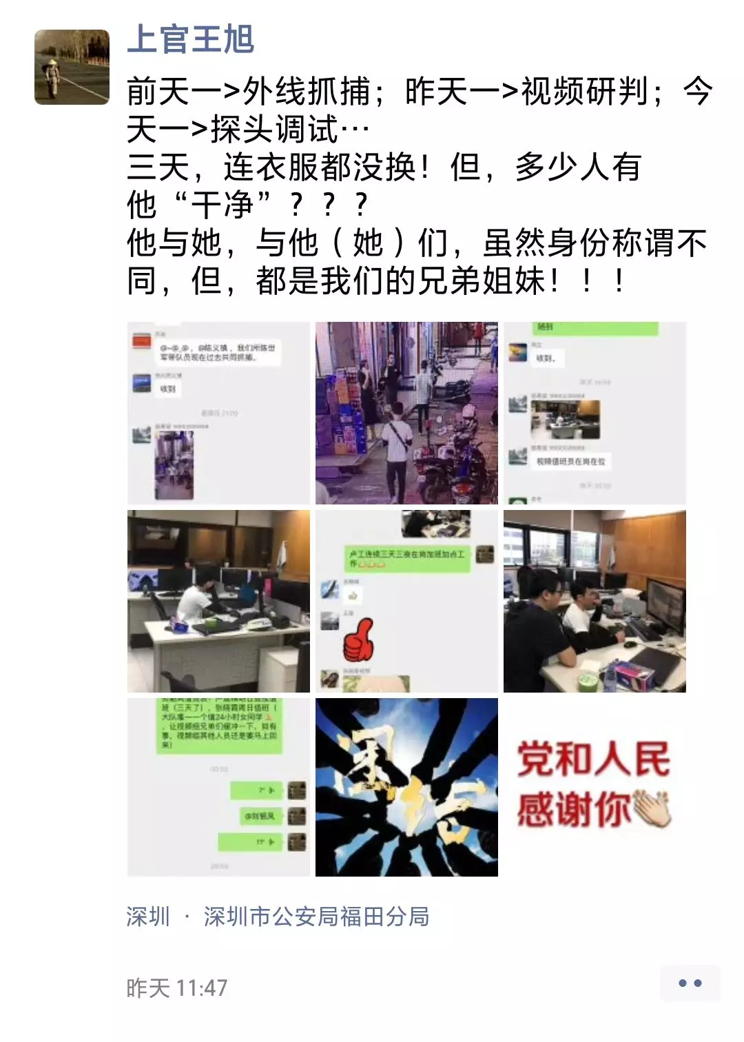 ▲視頻警察大隊大隊長上官王旭朋友圈