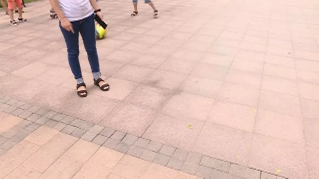 她正帶著兒子在樓下的廣場(chǎng)活動(dòng)