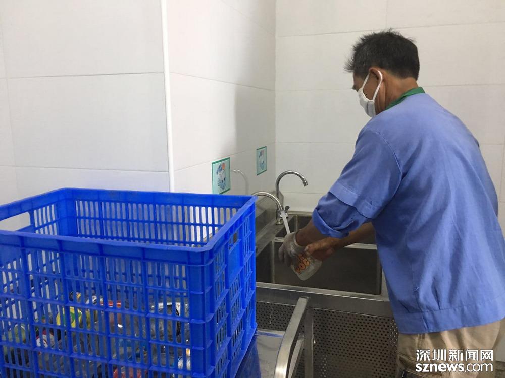 鄧伯今年60歲,是來深圳帶孫子的,因為老伴能幫忙,所以他應(yīng)聘成為了一名小區(qū)清潔員。小區(qū)實行垃圾分類一年多以來,鄧伯工作輕松了很多。每天他只需巡視幾遍垃圾桶,將滿了的垃圾裝在框里帶回暫存點,進行二次分揀和清洗后,再將垃圾桶歸放原處;等物業(yè)在微信平臺上聯(lián)系好運送車輛,協(xié)助運送人員運走垃圾就行。