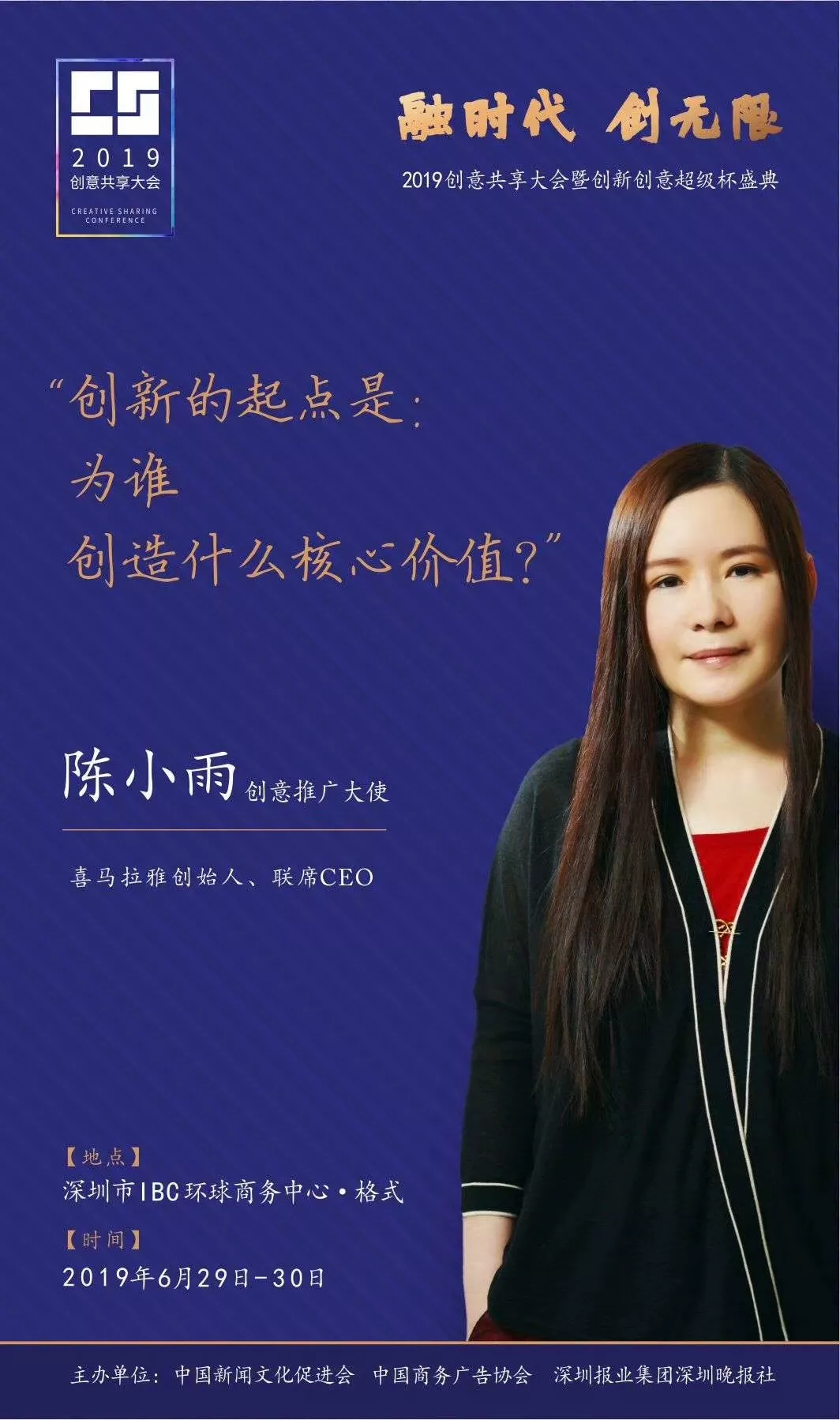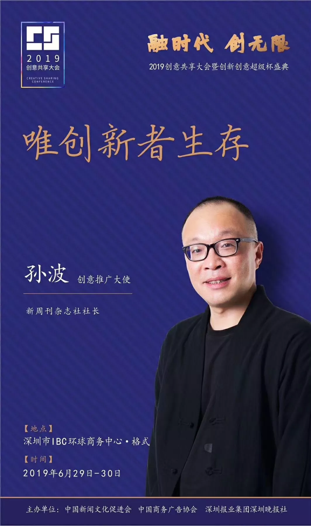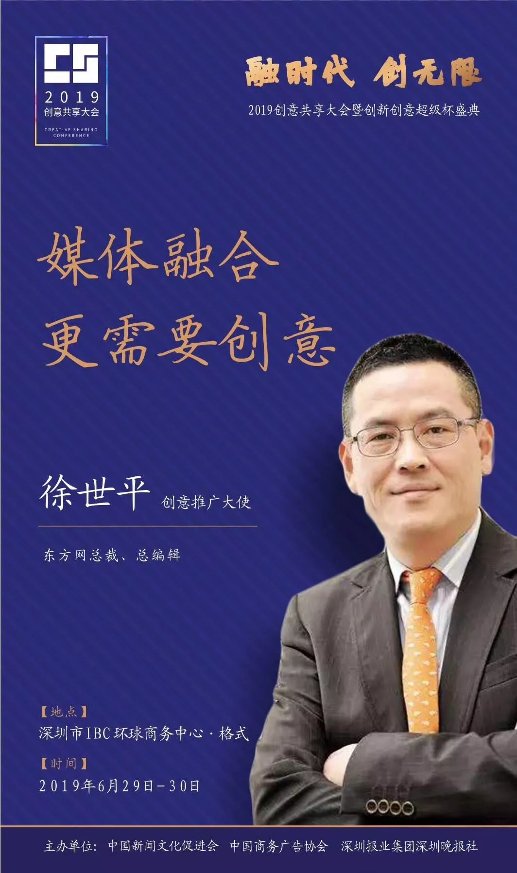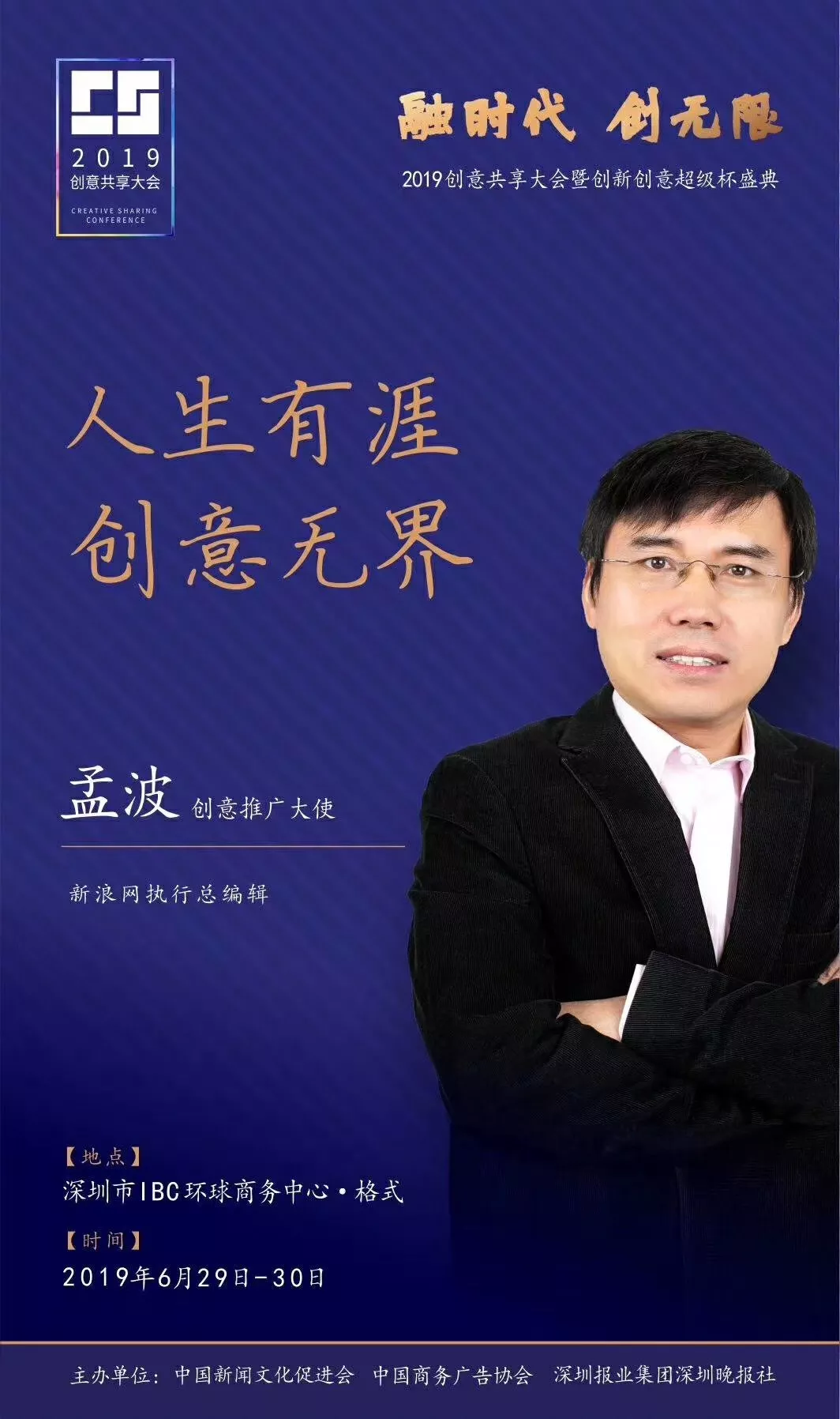 為了展現(xiàn)創(chuàng)意中國的精神風(fēng)貌和創(chuàng)意傳媒的文化力量,構(gòu)建創(chuàng)新創(chuàng)意共同體,擘畫美好圖景和未來趨勢,2019年6月29日至30日,由中國新聞文化促進會、中國商務(wù)廣告協(xié)會、深圳報業(yè)集團深圳晚報社等聯(lián)合主辦的“融時代創(chuàng)無限——2019創(chuàng)意共享大會暨創(chuàng)新創(chuàng)意超級杯盛典”將在深圳市IBC環(huán)球商務(wù)中心隆重舉辦。