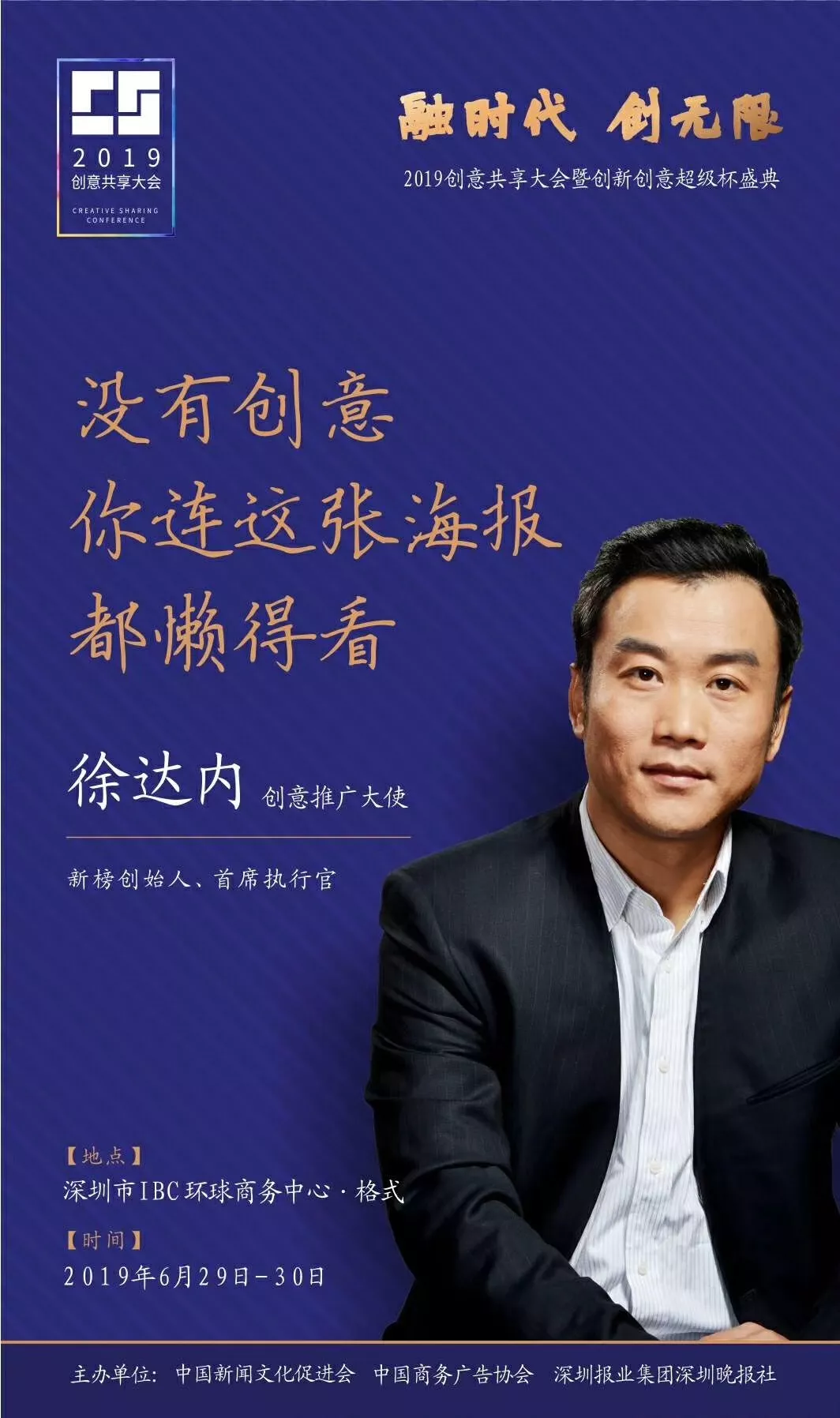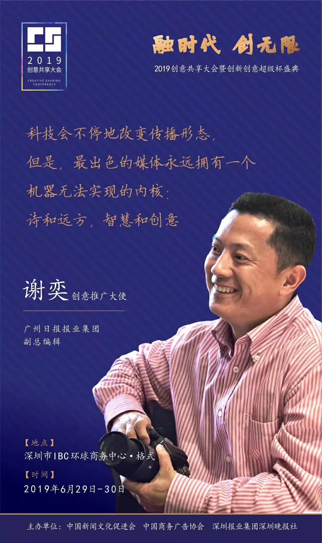 為了呼應(yīng)這個時代命題,構(gòu)建創(chuàng)新創(chuàng)意共同體,擘畫美好圖景和未來趨勢,中國新聞文化促進會、中國商務(wù)廣告協(xié)會和深圳報業(yè)集團深圳晚報社聯(lián)合發(fā)起主辦2019創(chuàng)意共享大會暨創(chuàng)新創(chuàng)意超級杯盛典。