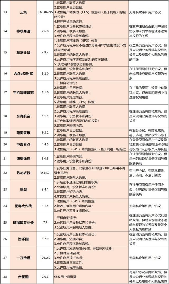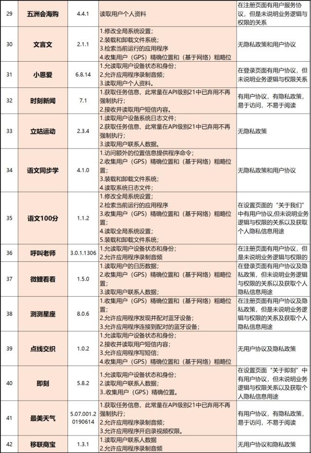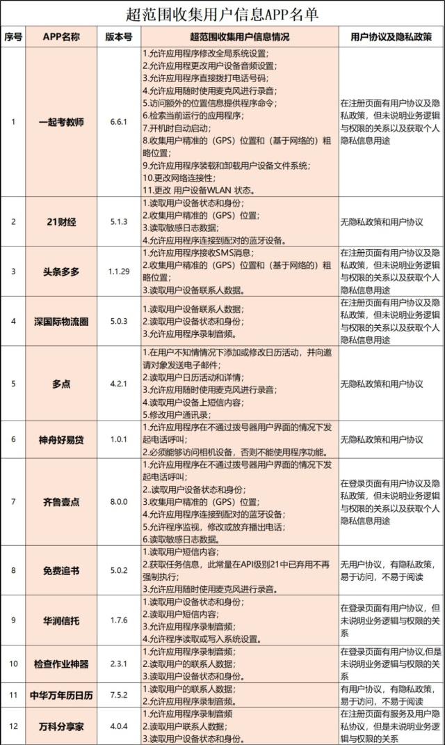 附:42款超范圍收集用戶信息app名單