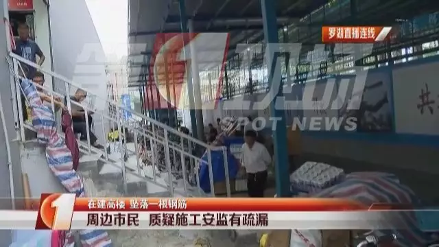據(jù)目擊者介紹,在羅湖帝豪金融大廈附近,一根建筑鋼筋突然從高空墜落,砸在了路邊,連水泥地面都被鋼筋戳穿一個洞。