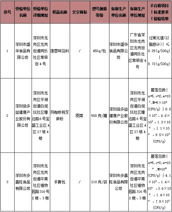 本次共抽檢生產(chǎn)環(huán)節(jié)食品291批次,涉及生產(chǎn)環(huán)節(jié)經(jīng)營主體168家次,共檢測食品指標(biāo)3219項次。其中檢出不合格樣品3批次,涉及不合格食品類別有其他食品1批次,方便食品1批次,糕點1批次;涉及不合格項目類別為微生物污染、品質(zhì)指標(biāo)。