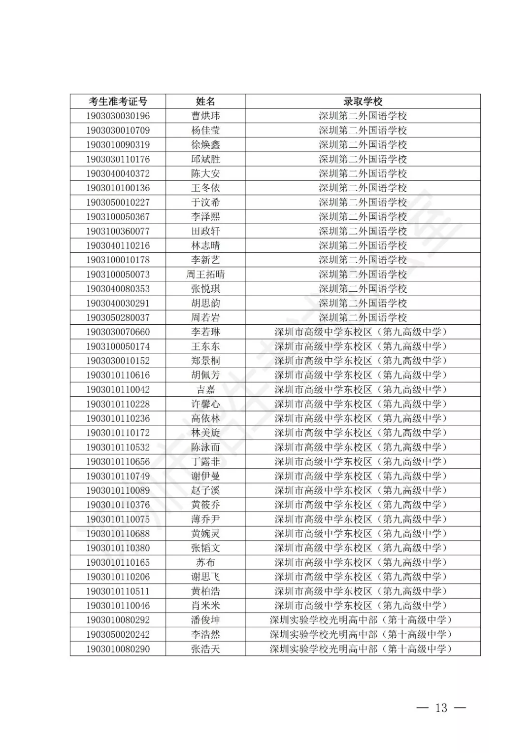 深圳公布2019年公辦高中特色團隊錄取標準 附錄取名單