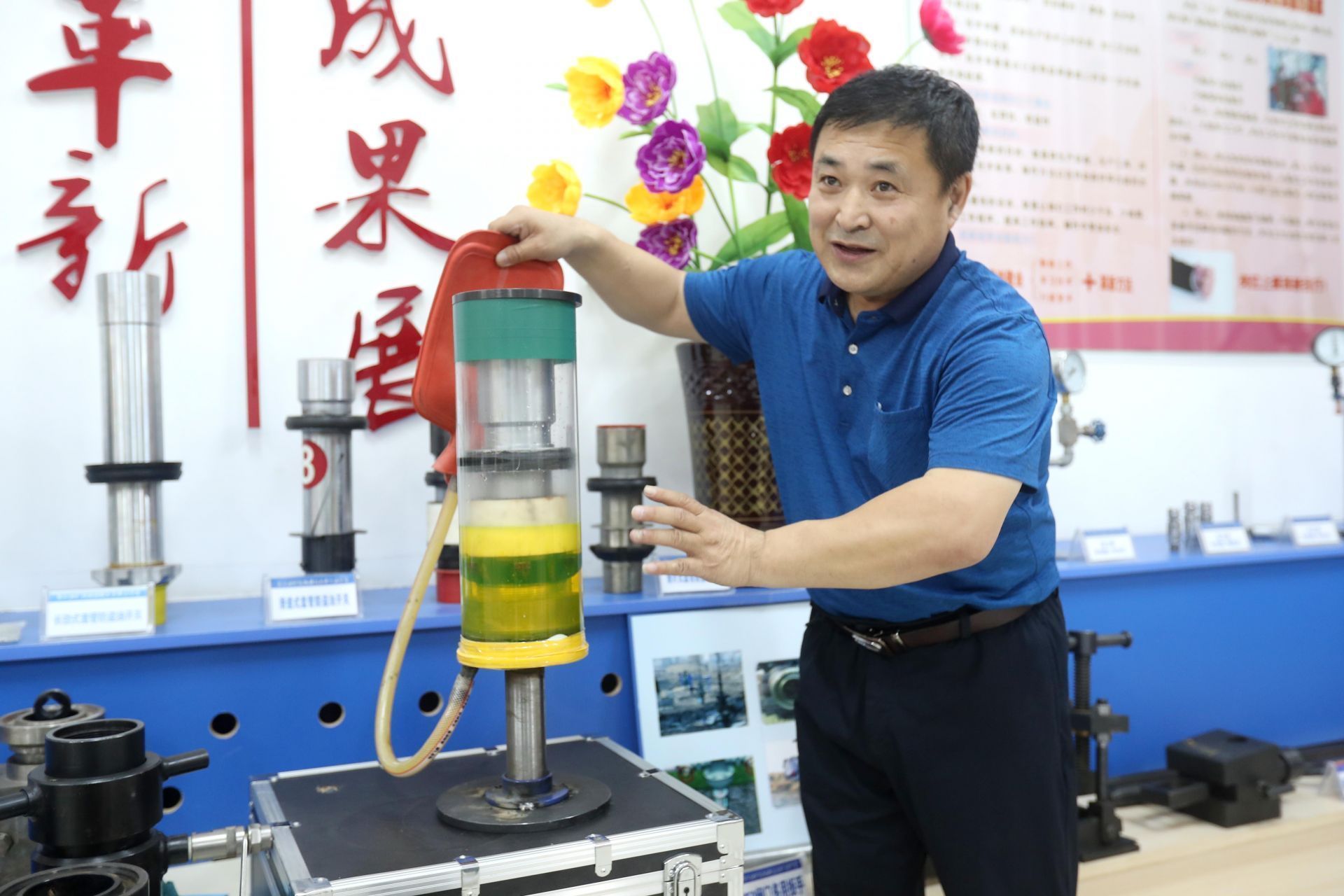 見到段福海時(shí),他身著一件藍(lán)色Polo杉,笑瞇瞇的,個(gè)頭敦實(shí),走路很快。在二樓展示廳里的一面墻上,擺滿了段福海的“發(fā)明創(chuàng)造”所獲的獎(jiǎng)狀。而在一墻之隔的“勞模創(chuàng)新工作室”,他發(fā)明的“家伙什兒”堆滿了整間屋。他用那布滿老繭的厚厚手掌隨便拿起一個(gè),開始向記者介紹其用途?!澳憧?,這個(gè)小東西成本才五毛錢,卻解決了100萬的難題。這個(gè)鋼絲球兩塊錢,但給國家省了……”在油田一線工作的35年間,段福海研發(fā)的創(chuàng)新成果多達(dá)232項(xiàng),累計(jì)創(chuàng)造經(jīng)濟(jì)效益2.38億元。