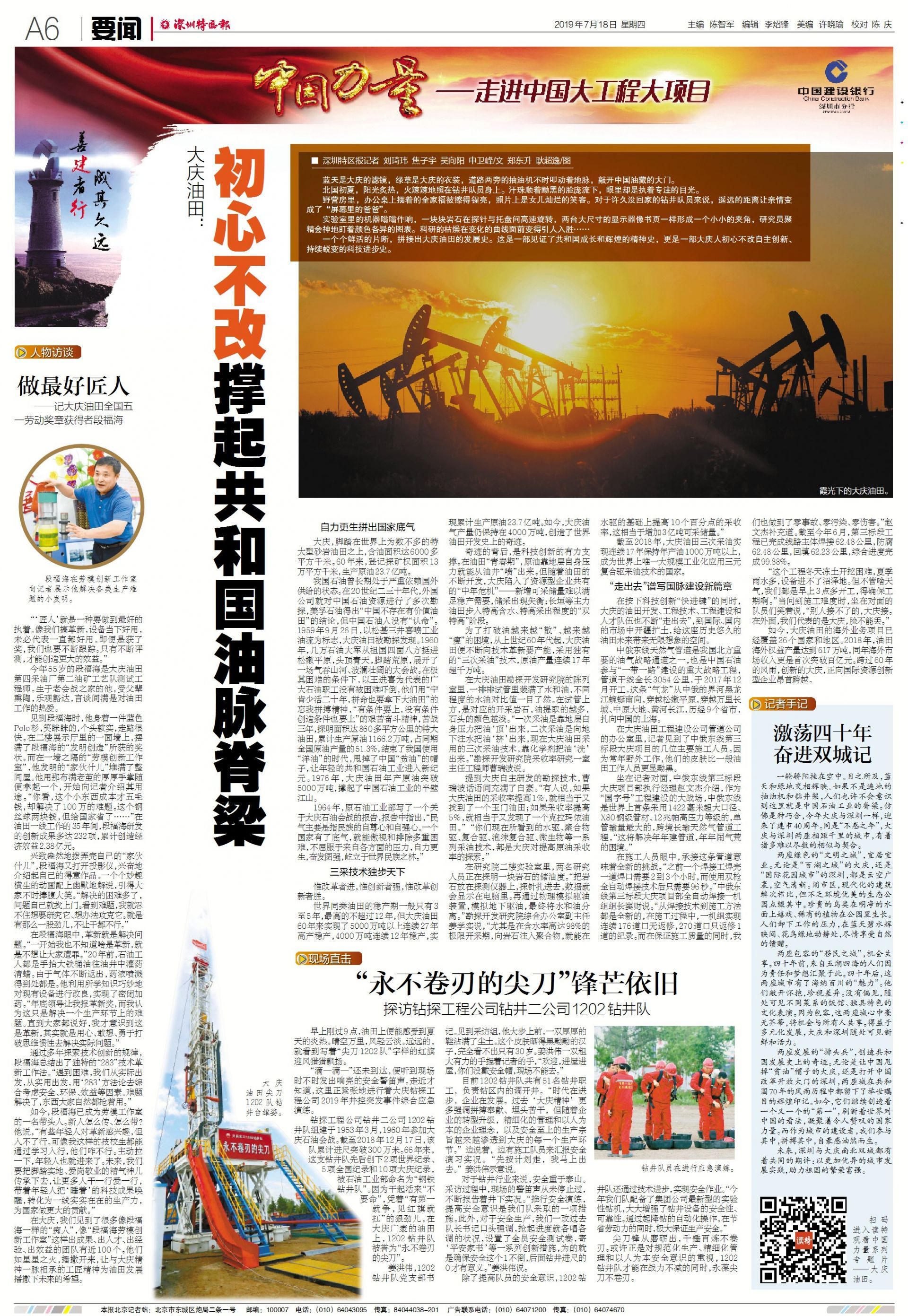 兩座發(fā)展的“排頭兵”,創(chuàng)造共和國發(fā)展史上的奇跡。無論是讓中國甩掉“貧油”帽子的大慶,還是打開中國改革開放大門的深圳,兩座城在共和國70年的風(fēng)雨歷程中都留下了舉世矚目的輝煌印記。如今,它們繼續(xù)創(chuàng)造著一個(gè)又一個(gè)的“第一”,刷新著世界對(duì)中國的看法,凝聚著令人贊嘆的國家力量。而作為城市的建設(shè)者,我們參與其中,拼搏其中,自豪感油然而生。