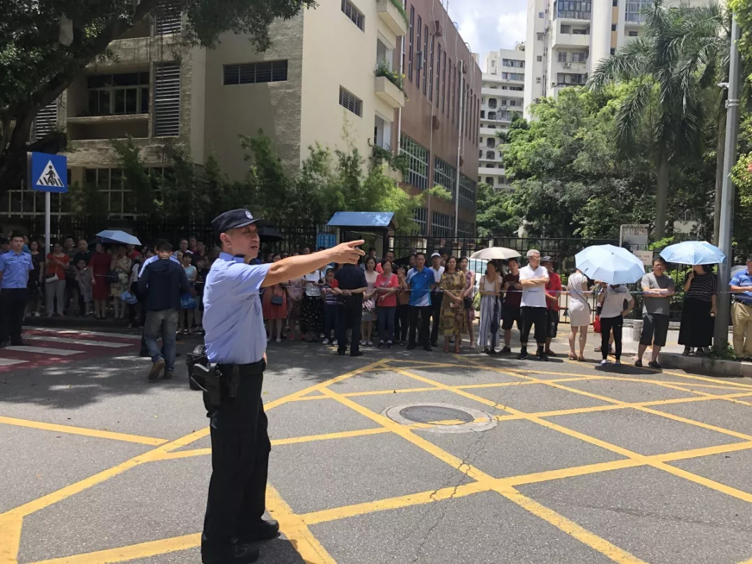 在深圳實(shí)驗(yàn)中學(xué)的校門外,正在執(zhí)勤護(hù)考的通心嶺派出所所長(zhǎng)林志強(qiáng)正跟送考的家長(zhǎng)們“嘮嗑”?!按蠹叶颊具@么久了,辛苦了!一會(huì)考試結(jié)束后,咱們來(lái)猜一猜第一個(gè)走出來(lái)的是男生還是女生?!薄拔也率悄猩!薄拔也率桥!奔议L(zhǎng)們一掃臉上焦急的表情,開始笑著討論起來(lái)。