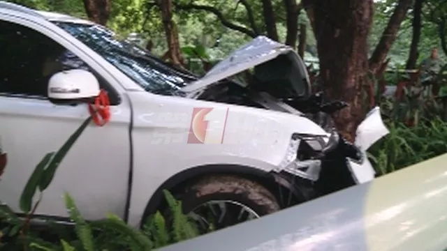 事情發(fā)生在7月21日下午3點(diǎn)50分,在事發(fā)現(xiàn)場可以看到一輛白色三菱汽車撞到了一棵樹,車頭被撞得完全凹陷,支離破碎。