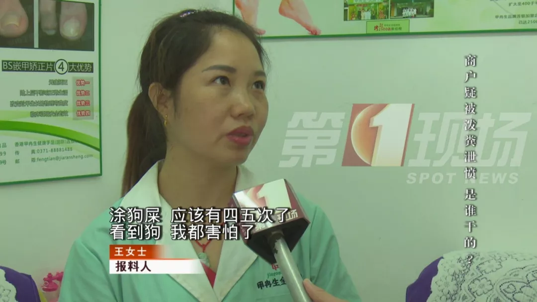 深廣電第一現(xiàn)場(chǎng)2019年7月26日訊 市民王女士在深圳黃貝嶺附近經(jīng)營著一家治療灰指甲的店,24日午夜時(shí)分,有一神秘人在她店門口潑了黃褐色的物體,讓王女士現(xiàn)在看到狗都怕,到底發(fā)生了什么?這跟狗又有啥關(guān)系?